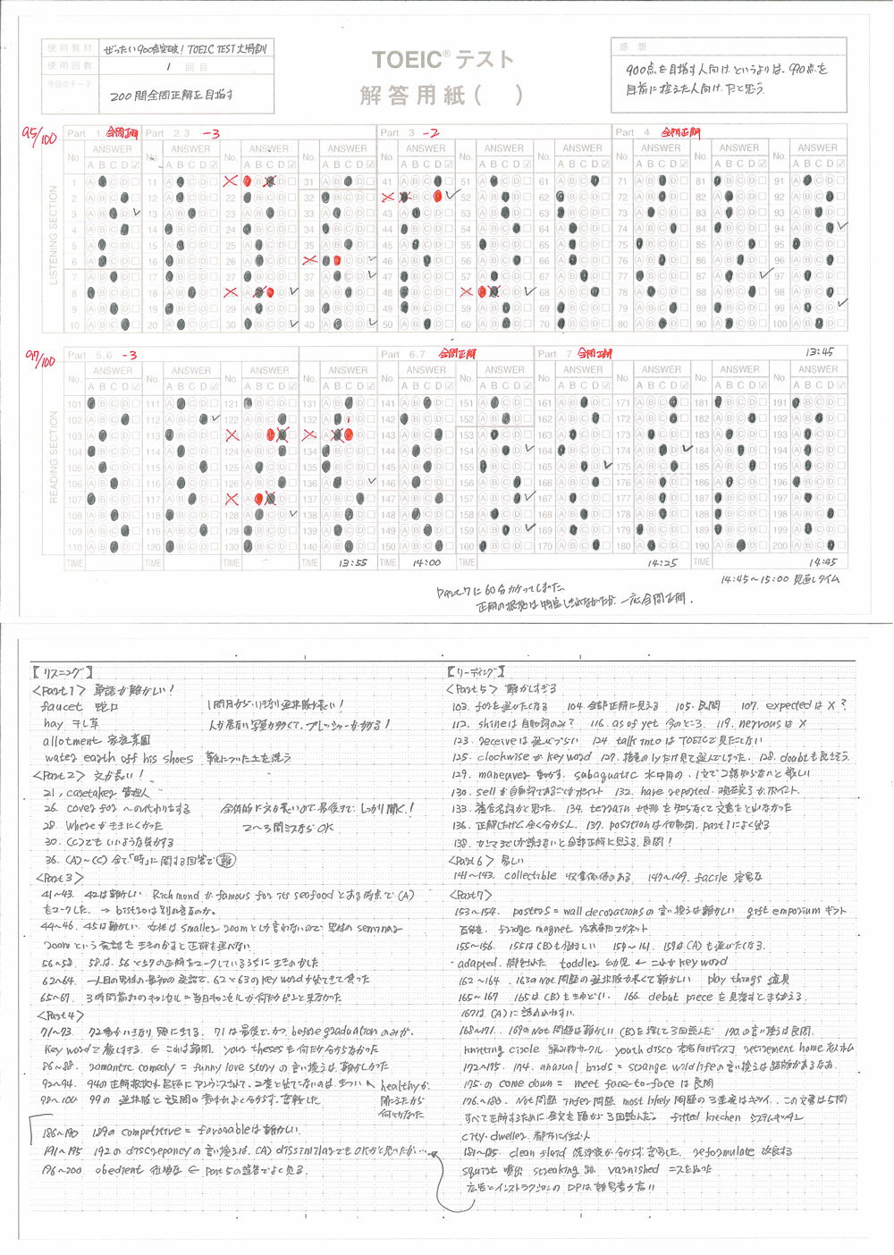 - Part1とPart2は、知らない単語、聴き取れなかった箇所をチェックし、何度も聴き直す。